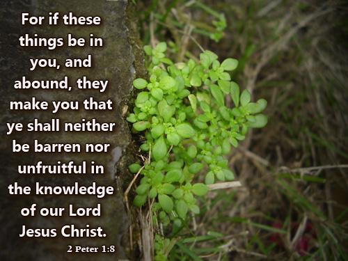But also for this very reason, giving all diligence, add to your faith virtue, to virtue knowledge, to knowledge self-control, to self-control perseverance, to perseverance godliness, to godliness brotherly kindness, and to brotherly kindness love. For if these things are yours and abound, you will be neither barren nor unfruitful in the knowledge of our Lord Jesus Christ. 2 Peter 1:8